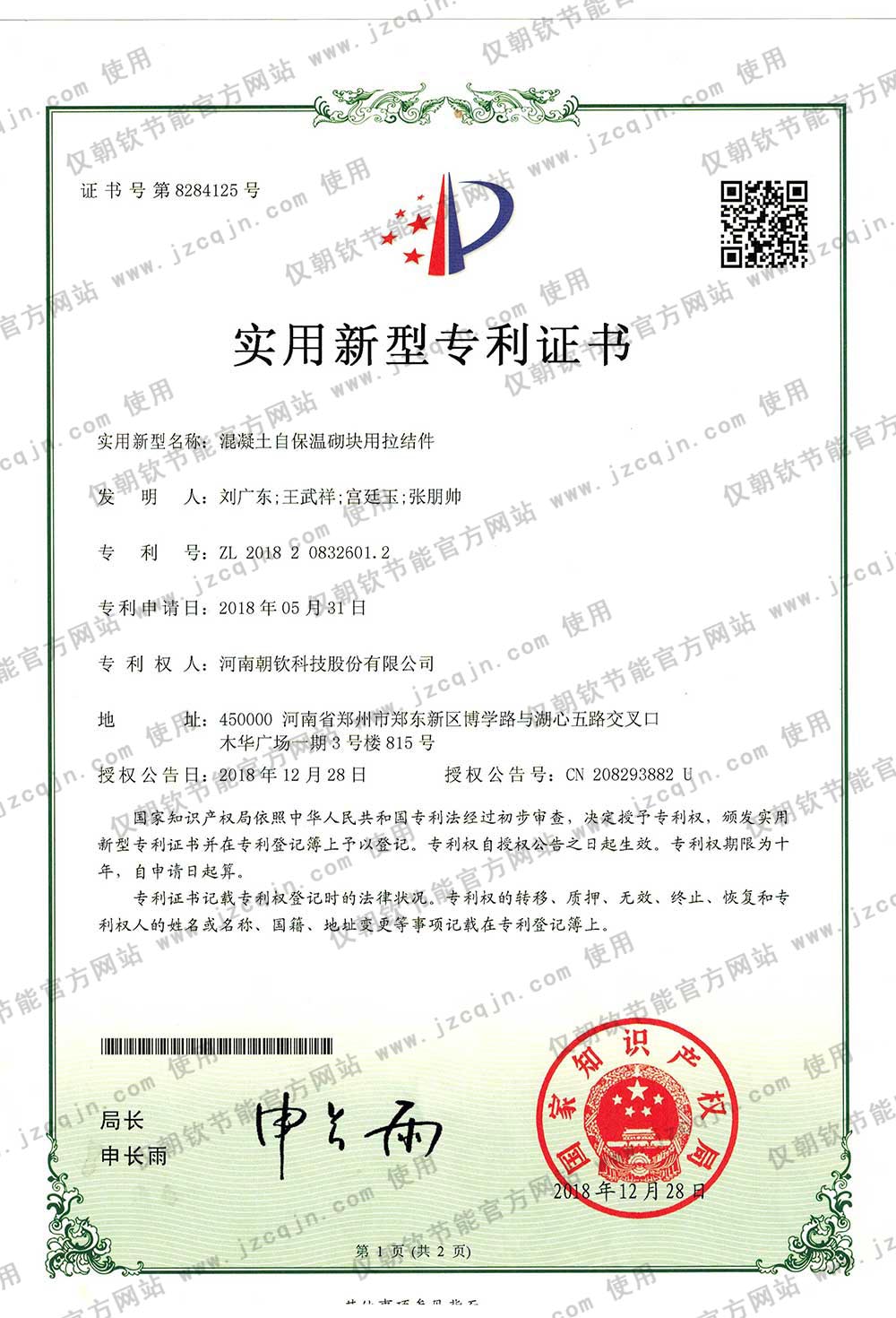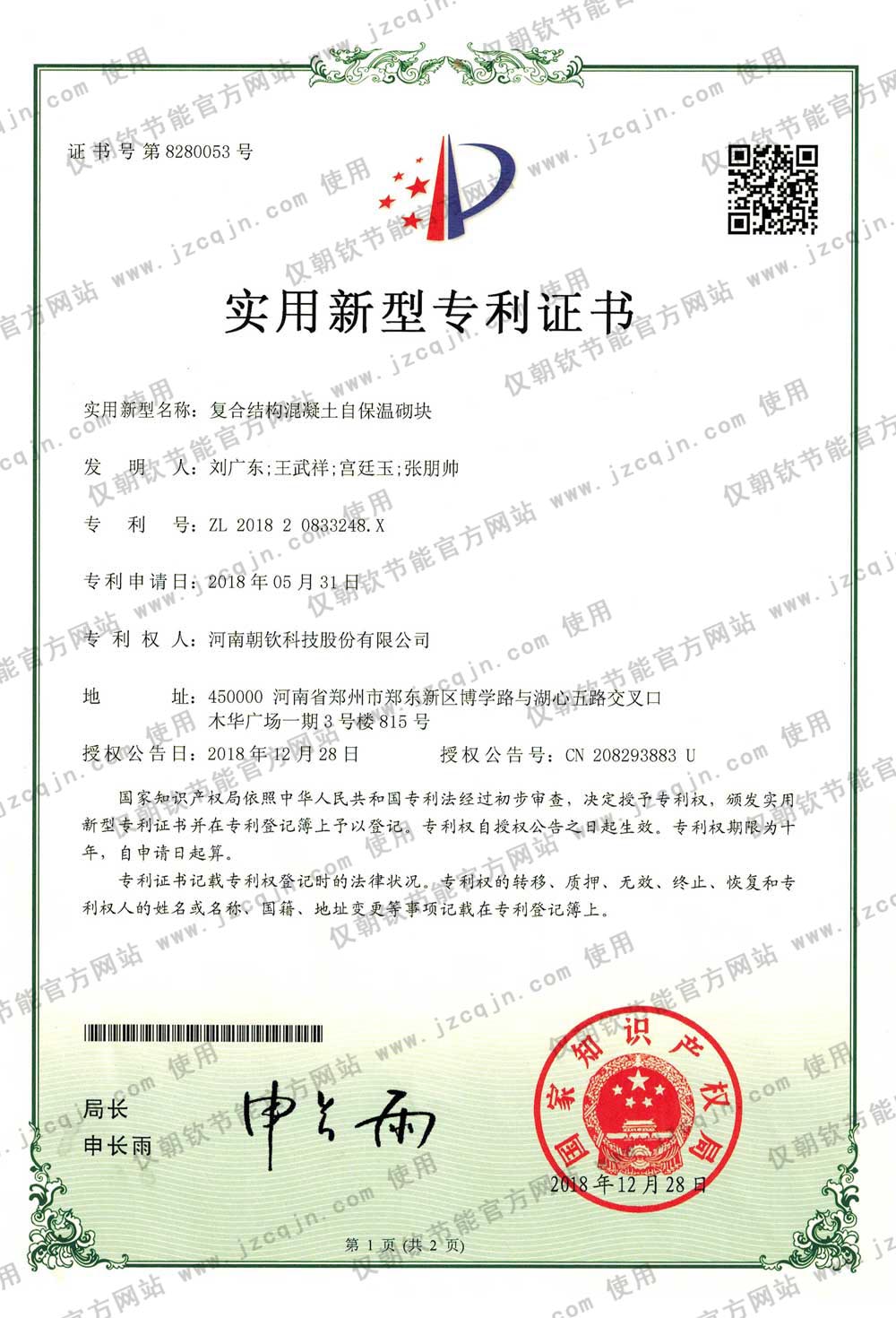 朝欽節(jié)能擁有數(shù)十項(xiàng)科研成果與專利,及河南省建設(shè)廳等機(jī)構(gòu)鑒定證書(shū),并發(fā)布了數(shù)項(xiàng)企業(yè)標(biāo)準(zhǔn)。